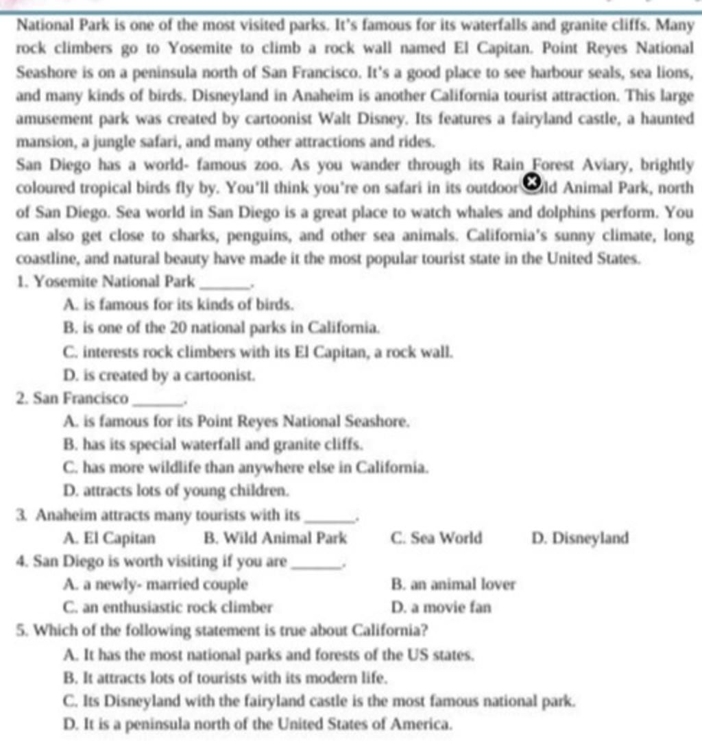`-` Dẫn chứng: Many rock climbers go to Yosemite to climb a rock wall named El Capitan.