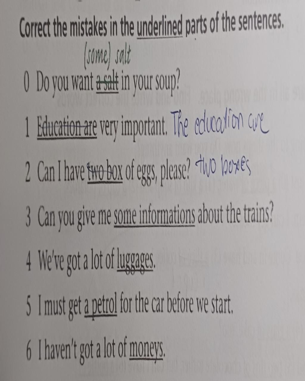 5 a petrol - some petrol petrol là danh từ không đếm được +câu này là câu khẳng định nên a-some