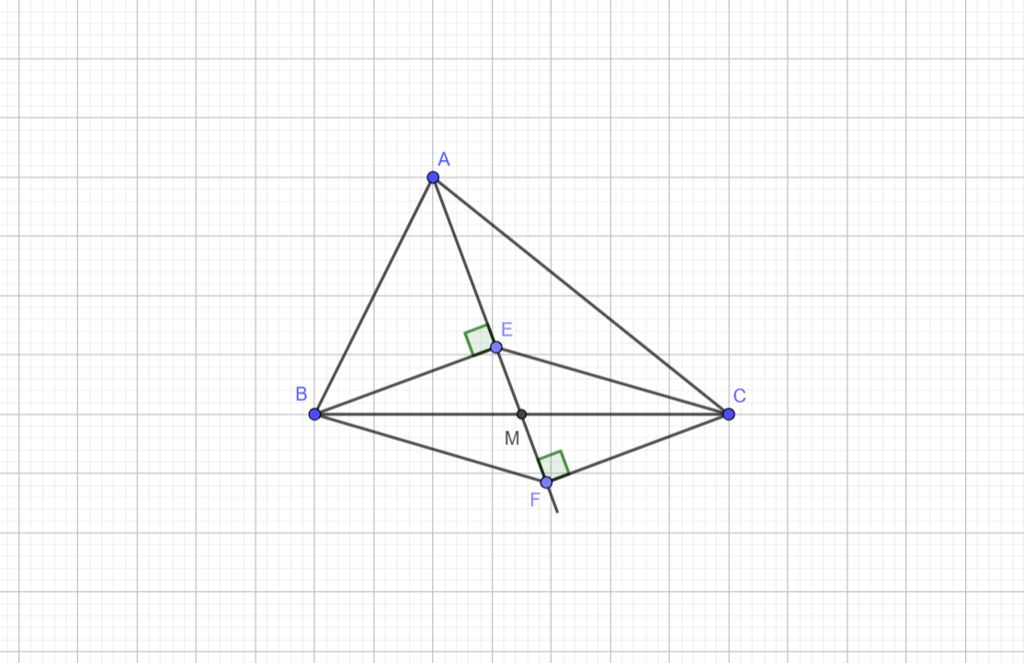 Cho tam giác ABC. M là trung điểm của AB. kẻ BE và CF cùng vuông góc với đường thẳng AM tại E và F.Chứng minh