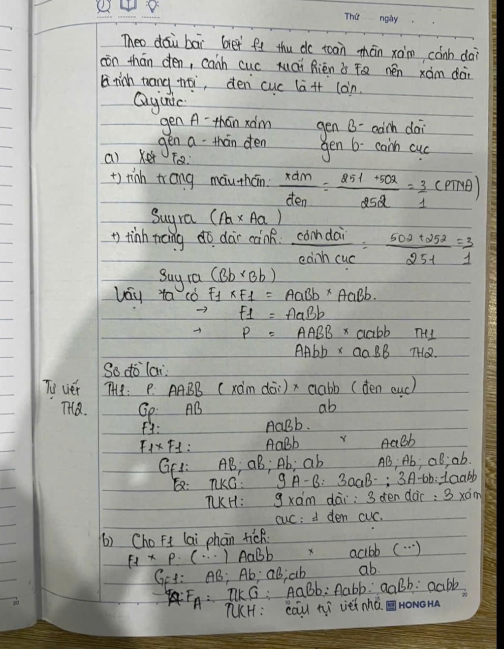 F1: $\frac{AB}{ab}$xám, dài) x $\frac{AB}{ab}$(xám, dài)