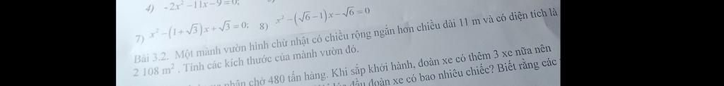 Biết diện tích là `2108m^2` có pt: