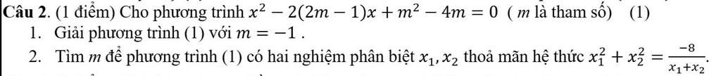 `x^2-2(2m-1)x+m^2-4m=0` `(1)`