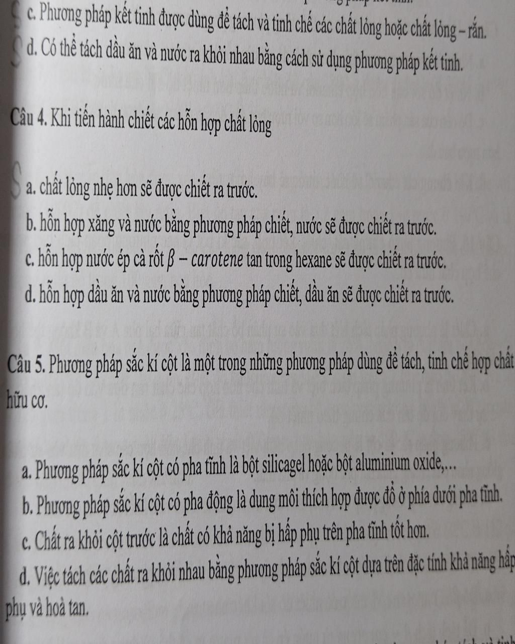 Câu 4. Khi tiến hành chiết các hỗn hợp chất lỏng