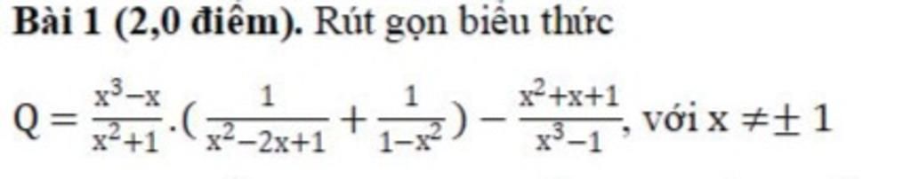 `Q=[x^3-x]/[x^2+1] * (1/[x^2-2x+1]+1/[1-x^2]) -[x^2+x+1]/[x^3-1] (x ne +-1)`