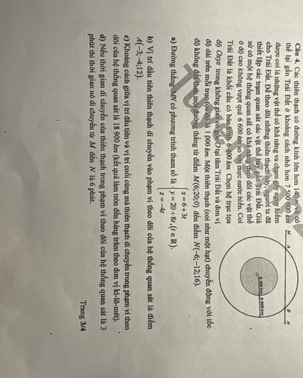 Câu 4. Các thiên thạch có đường kính lớn hơn 140m và có