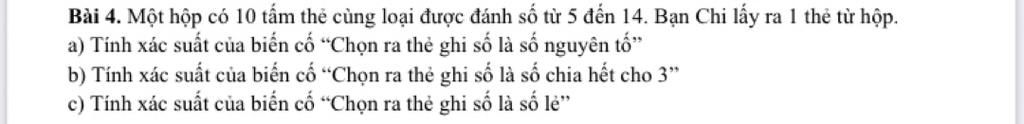 `(số số c h i a h ế t cho 3)/(tổng số tấm thẻ)=3/10`