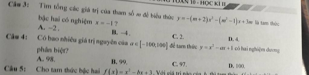 Để $y=-(m+2)x^2-(m^2-1)x+3m$ là tam thức bậc $2$