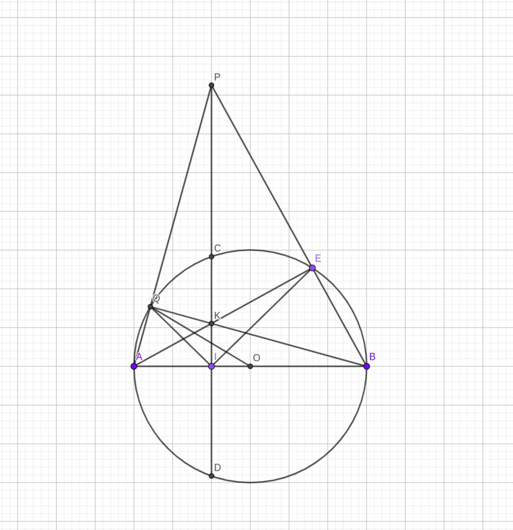 `-> P , Q , K , E` cùng thuộc đường tròn đường kính `PK`