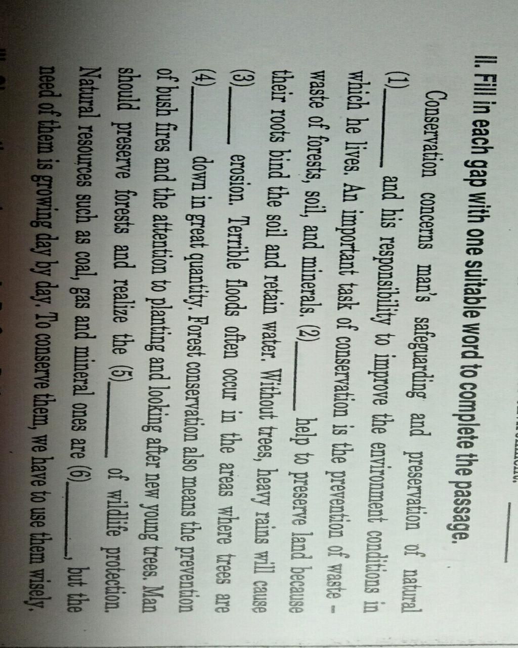 II. Fill in each gap with one suitable word to complete the passage.