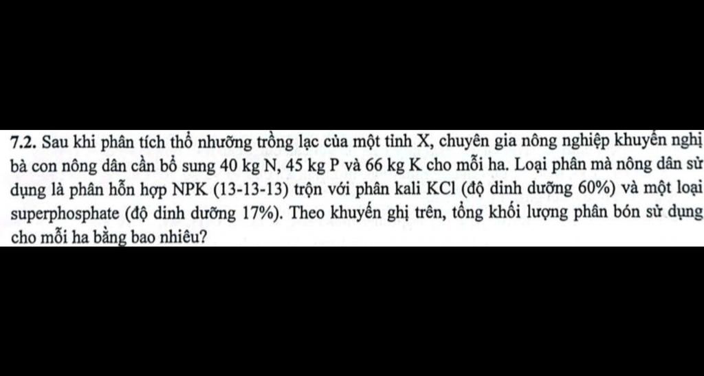 7.2. Sau khi phân tích thổ nhưỡng trồng lạc của một tỉnh X, chuyên gia nông nghiệp khuyến nghị