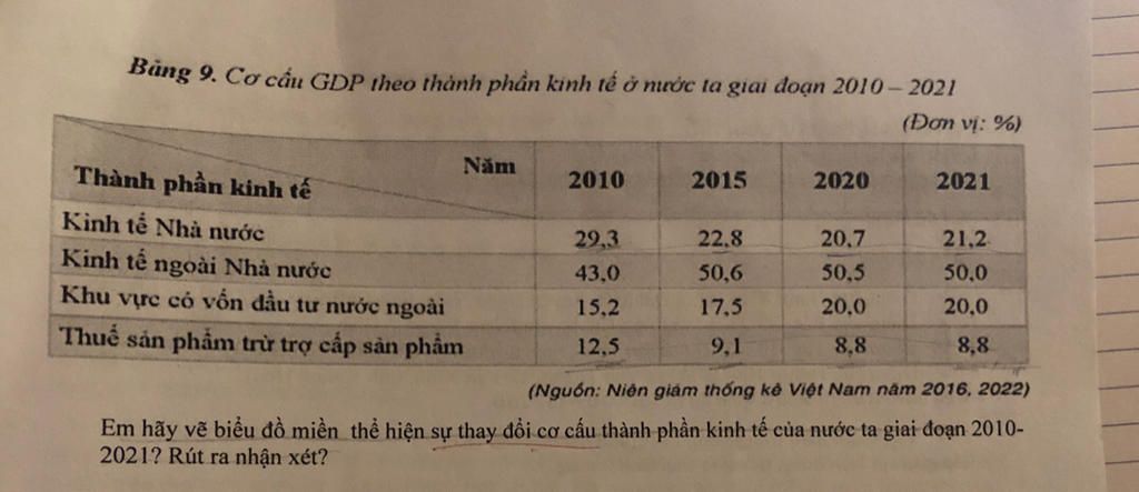Cơ cấu thành phần kinh tế của nước ta giai đoạn `2010-2021` có sự khác nhau, thay đổi và chuyển dịch: