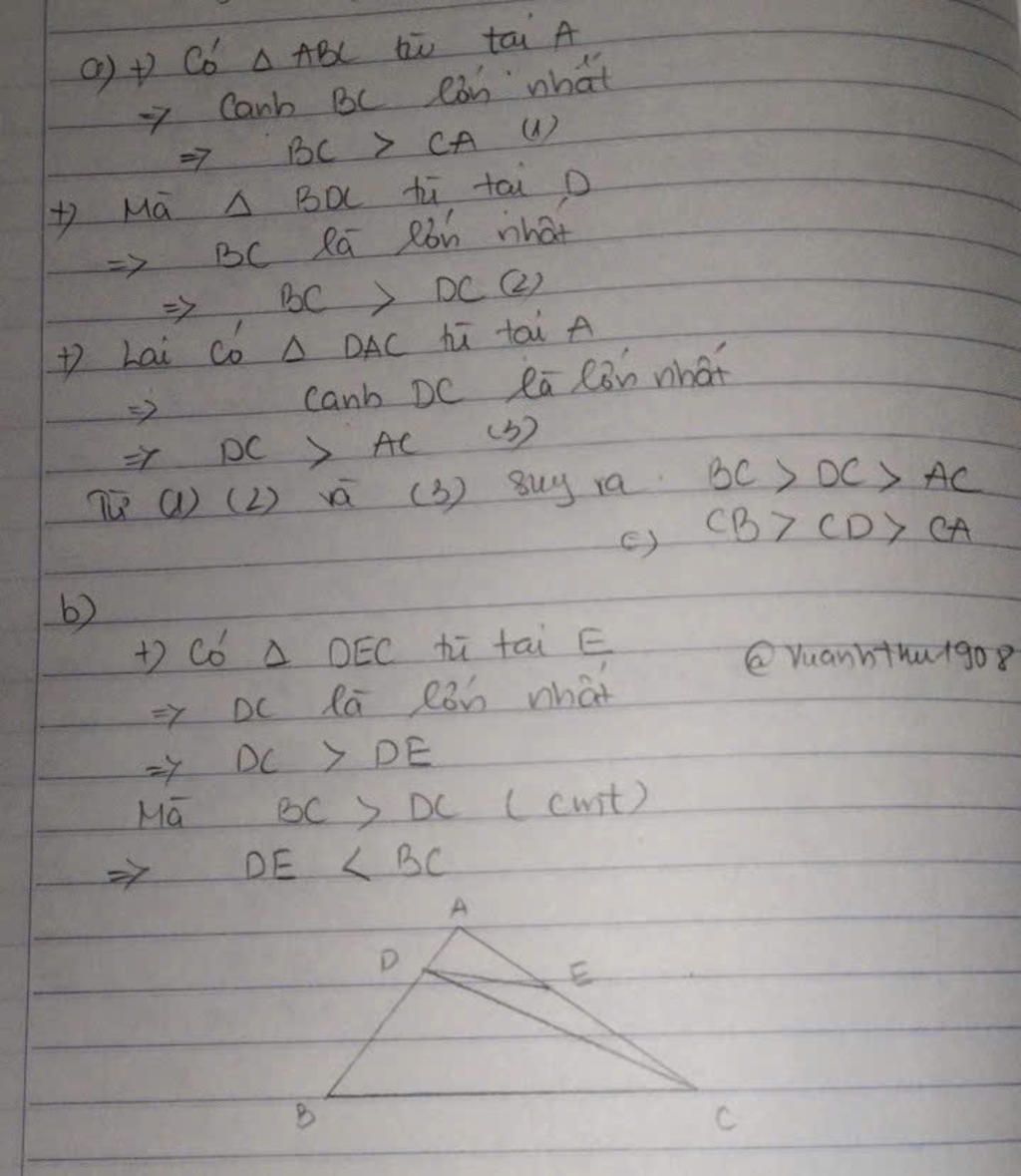 Từ `(1);(2)` và `(3)` suy ra `CA < CD < CB`