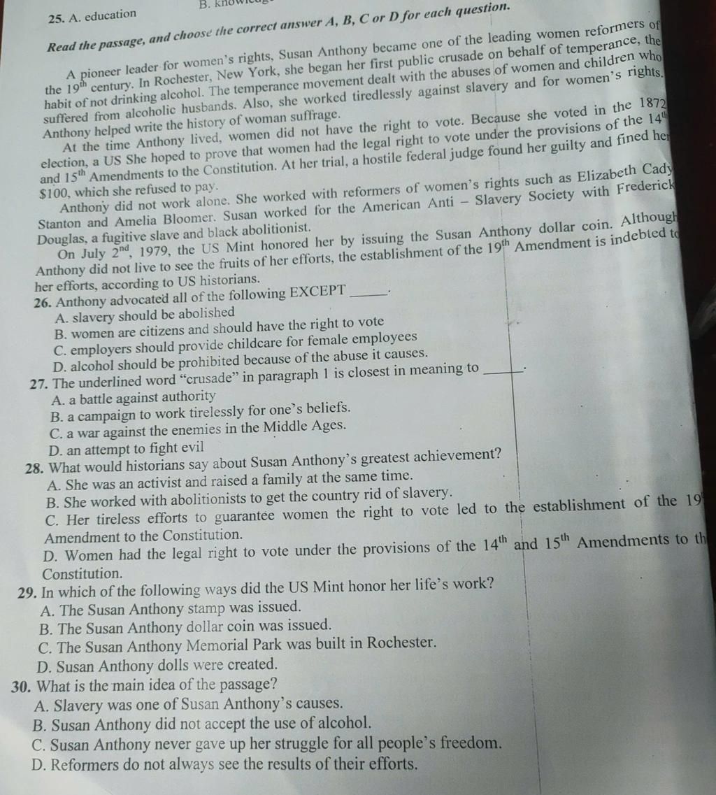 26. Key đề bài: advocate=ủng hộ => key words ở đoạn 1 và dòng đầu đoạn 2