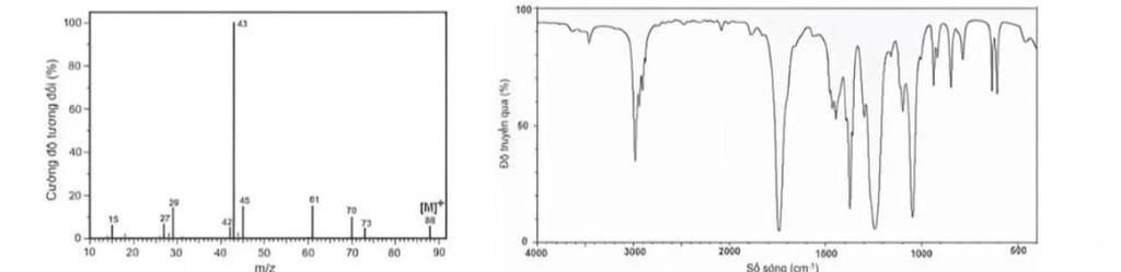 Biết peak cơ bản có m/z = 43 (peak có cường độ cao nhất) trên phổ khối lượng của X ứng với ion [CH3CO]+