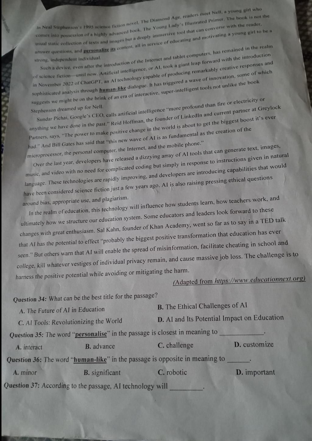 `Q37:` Theo đoạn văn, công nghệ AI sẽ ...