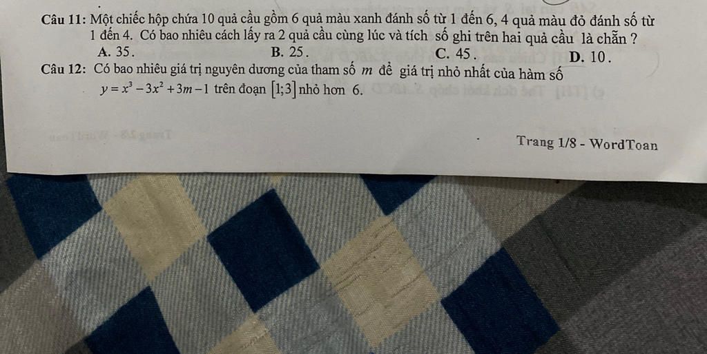 Xét `A`: "Lấy được hai quả cầu sao cho tích số ghi trên hai quả cầu là số chẵn"