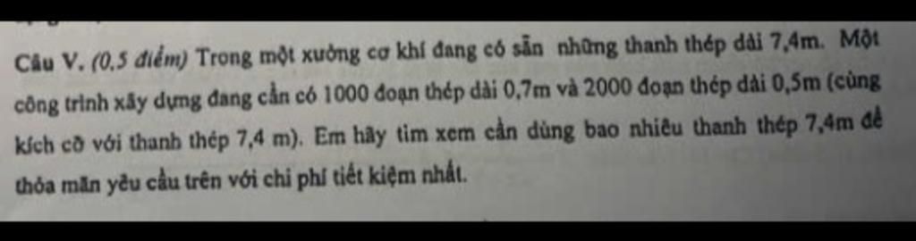 Một công trình cần có $1000$ đoạn thép dài $0,7 m$ và $2000$ đoạn thép dài $0,5m $