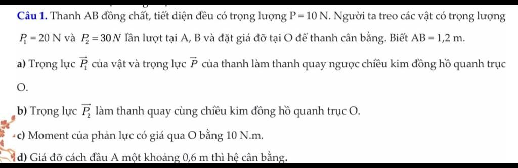 `OA = 0,7m to` Giá đỡ cách `A` là `0,7m`.