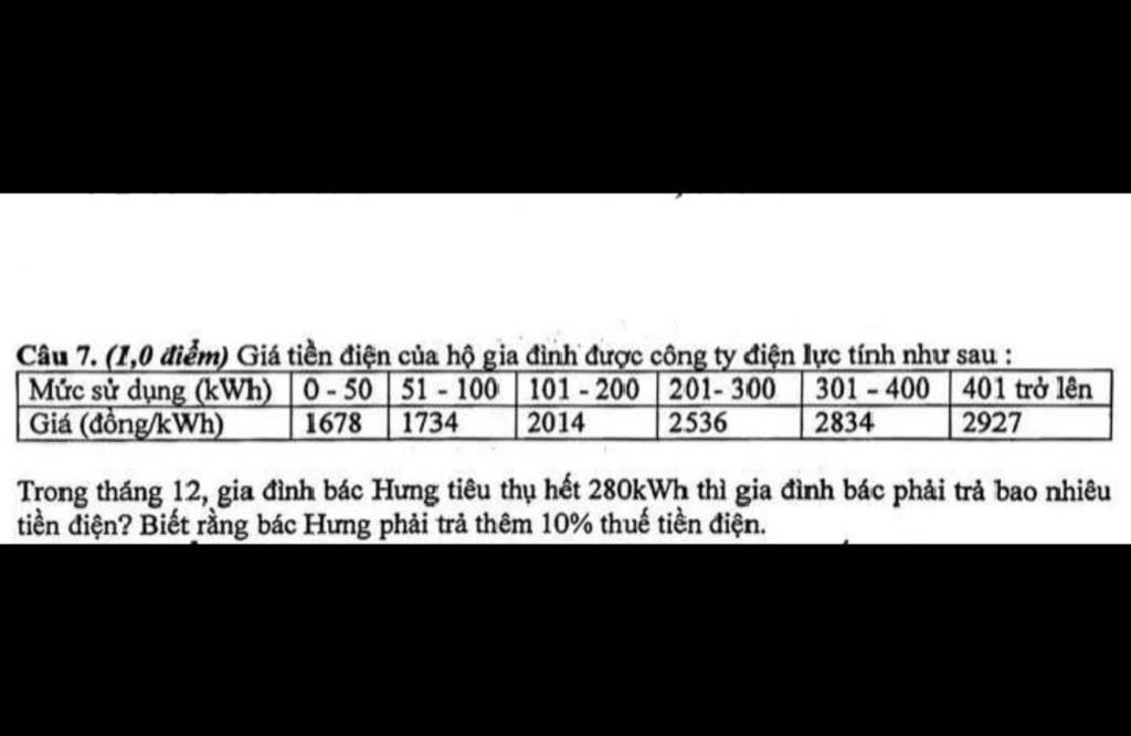 Số tiền thuế điện là: