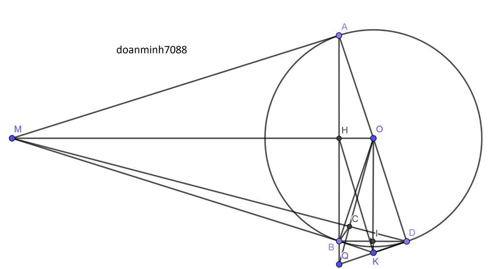 Từ điểm M nằm ngoài đường tròn (O), kẻ hai tiếp tuyến MA, MB với đường tròn (O) (A và B hai tiếp điểm). Kẻ đường kính AD của đường tròn (O), cắt AB tại H