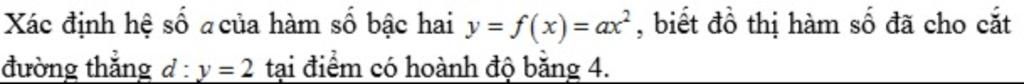 Thay `x = 4 ; y = 2` vào `y = ax^2` ta có: