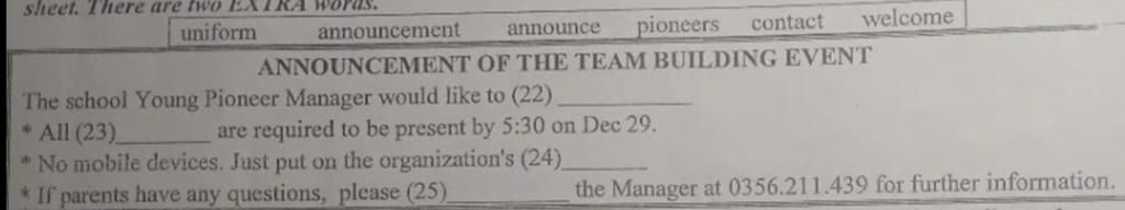 `=>` Trans : Giám đốc Đội Thiếu niên Tiền phong của trường xin thông báo.