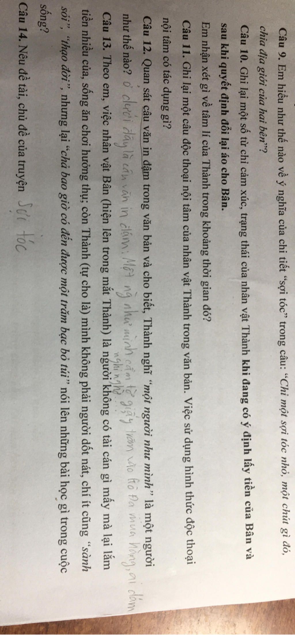 Câu 10. Ghi lại một số từ chỉ cảm xúc, trạng thái của nhân vật Thành khi đang có ý định lấy tiền của Bân và