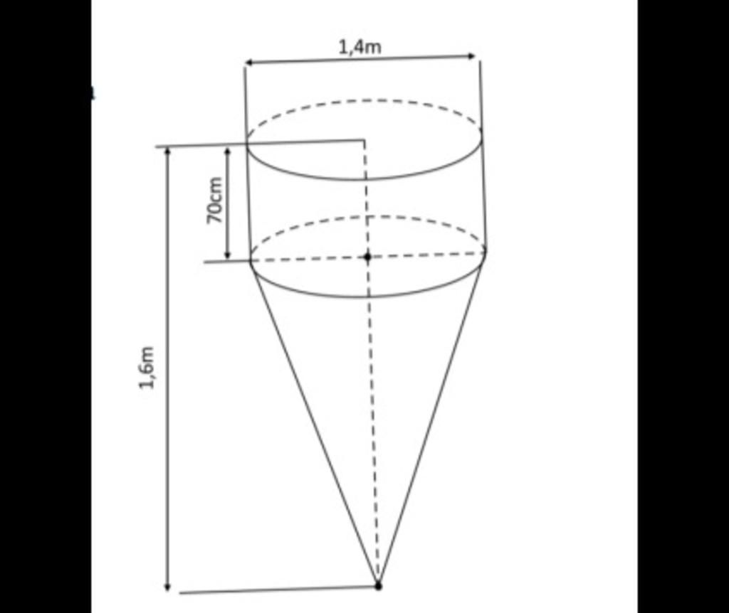 `V_n = 1/3 . \pi . r^2 . h = 1/3 . \pi . ((1/4)/2)^2 . ( 1,6 - 0,7 ) = 0,147\pi ( m^3)`