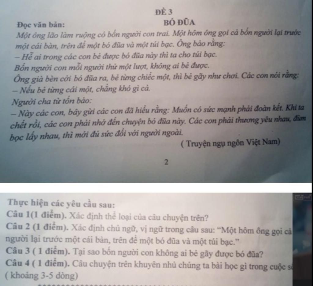 `1.` Thể loại của câu chuyện trên là `:` ngụ ngôn