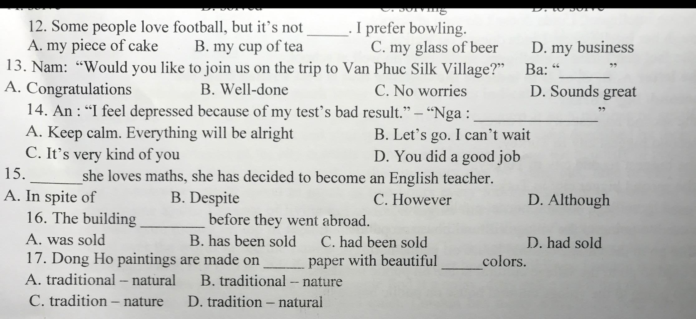 `->` Chọn `D` bởi vì "nghe có vẻ hay đó" sẽ hợp với ngữ cảnh hỏi gợi ý hay đề nghị ai muốn làm gì không.