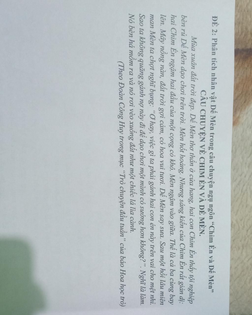 Phân tích nhân vật Dế Mèn trong câu chuyện ngụ ngôn Chim Én và dế mèn