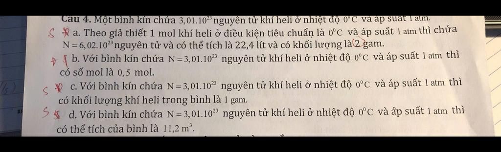 SX a. Theo giả thiết 1 mol khí heli ở điều kiện tiêu chuẩn là 0°C và áp suất 1 atm thì chứa