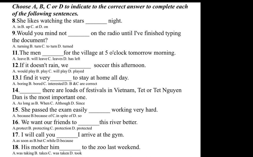 ` 8. C `