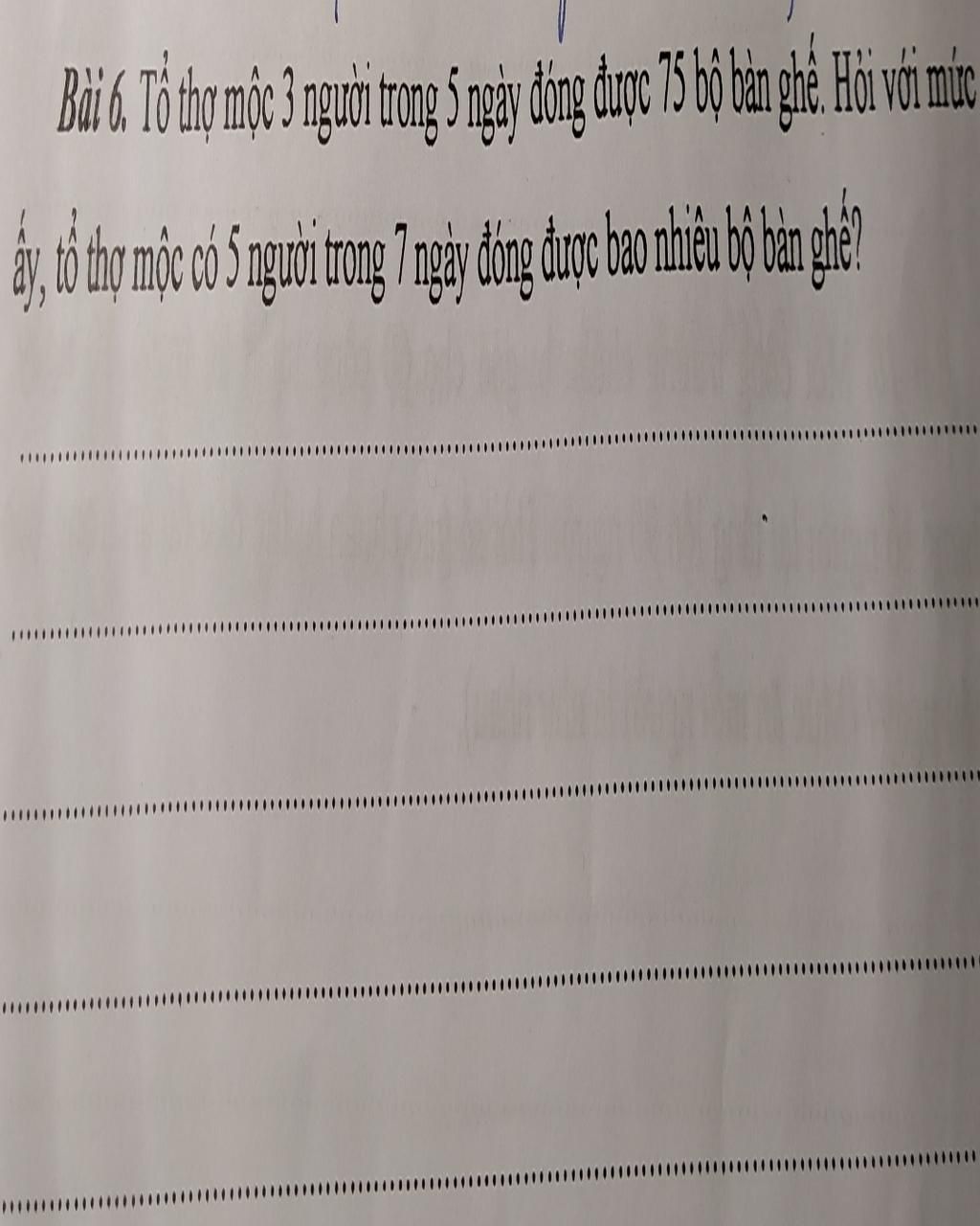 `->` Tổ thợ mộc `5` người trong `7` ngày làm được :