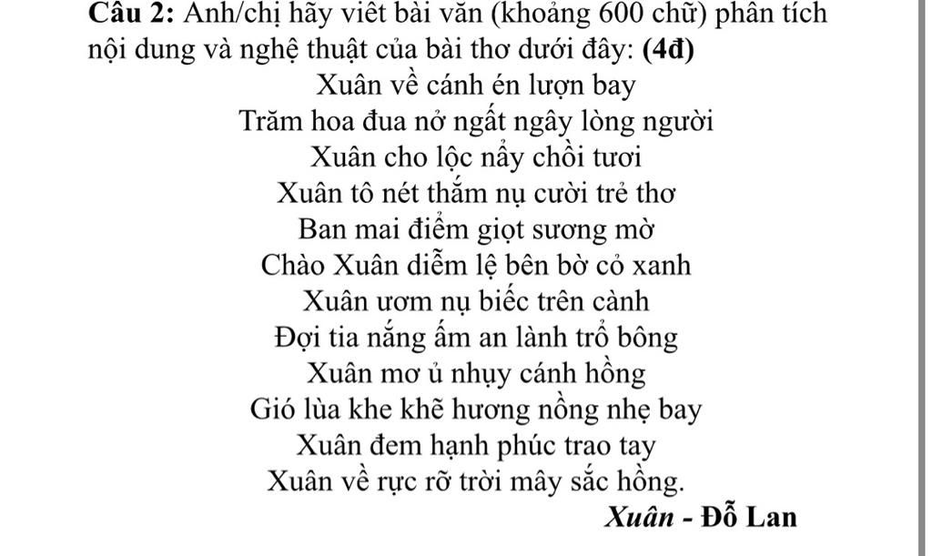 Câu 2: Anh/chị hãy viết bài văn (khoảng 600 chữ) phân tích