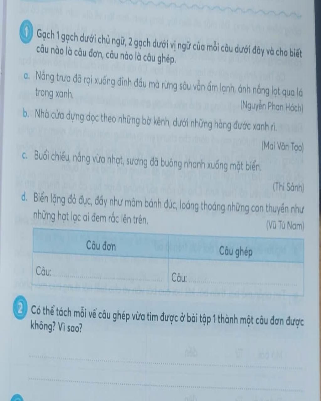 $+$ Câu 2: Sương đã buông nhanh xuống mặt biển.