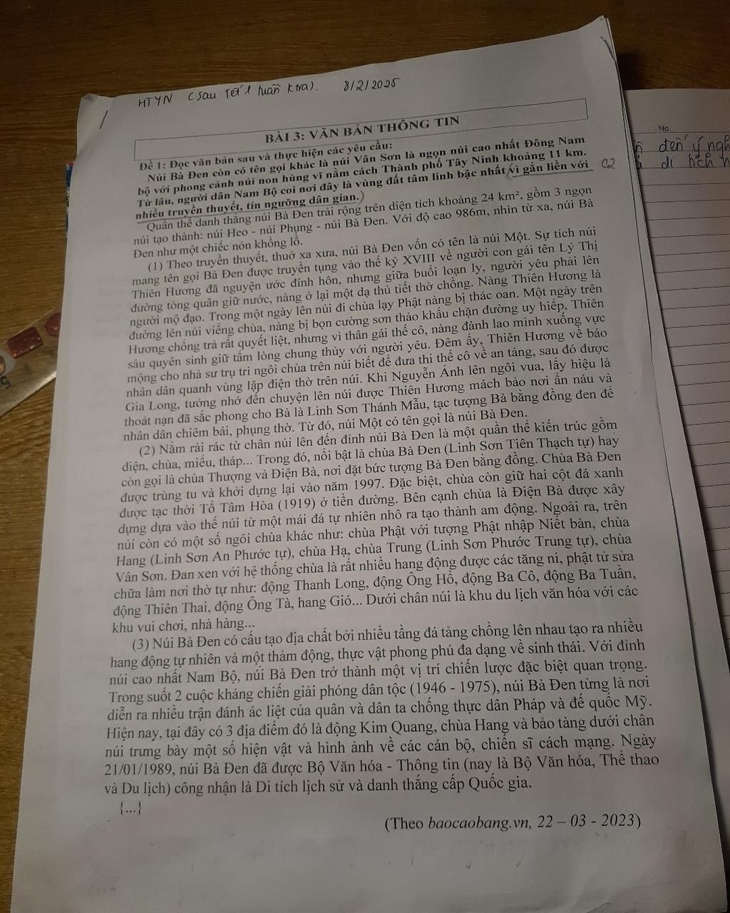 -Phương tiện phi ngôn ngữ: số liệu (những số liệu về núi bà Đen trong cách hình thành,chiều cao,diện tích,...)
