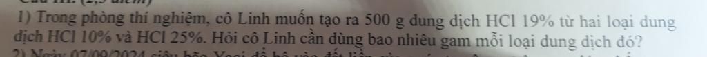 Vậy cô Linh cần `200g` dd `HCl` `10%` và `300g` dd `HCl` `25%`