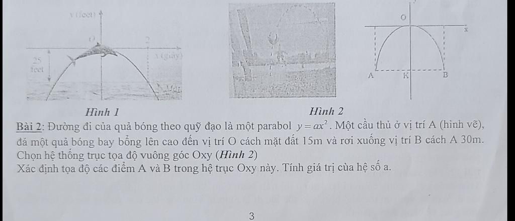 Bài 2: Đường đi của quả bóng theo quỹ đạo là một parabol y=ax”. Một cầu thủ ở vị trí A (hình vẽ),