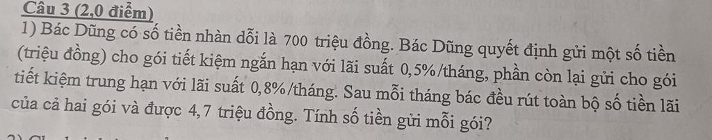 $\to \begin{cases}x+y=700\\ 0.005(x+y)+0.003y=4.7\end{cases}$