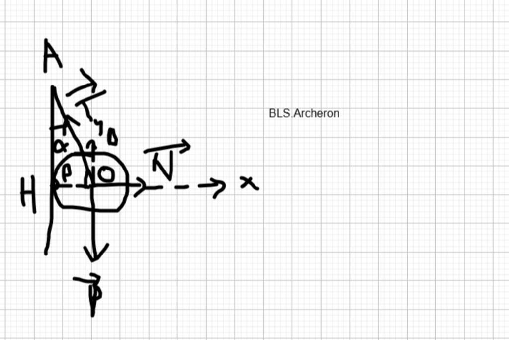 Quả cầu `m=4kg` bán kính `R= 15cm` tựa vào tường trơn chắn và được giữ nằm yên nhờ `1` dây treo gắn vào tường tại A. Chiều dài AB dài `15cm`. Tìm lực căng dây và lực nén của quả cầu lên tường biết `g=10`m/`s^2`