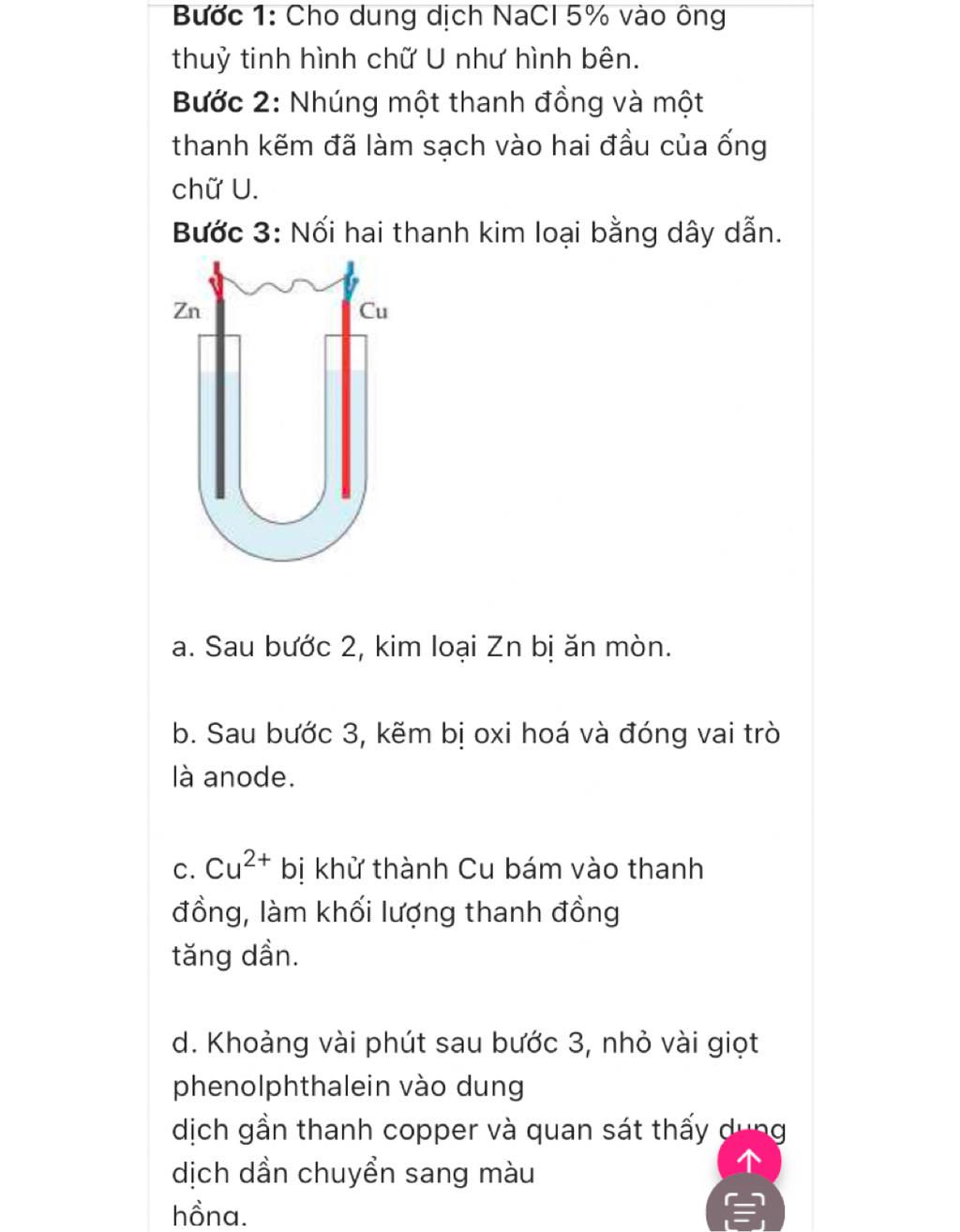 Sau bước 3 xảy ra ăn mòn điện hoá, kẽm là kim loại mạnh hơn bị oxi hoá và đóng vai trò anode