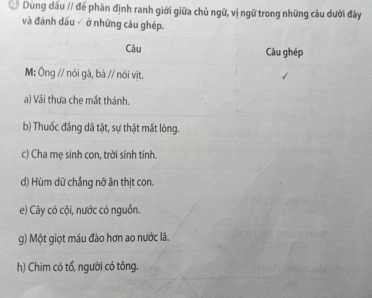 e) Cây // có cội , nước // có nguồn (đây là câu ghép )