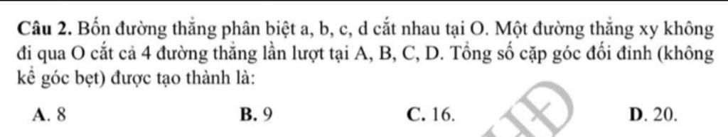 Tổng số cặp góc đối đỉnh: