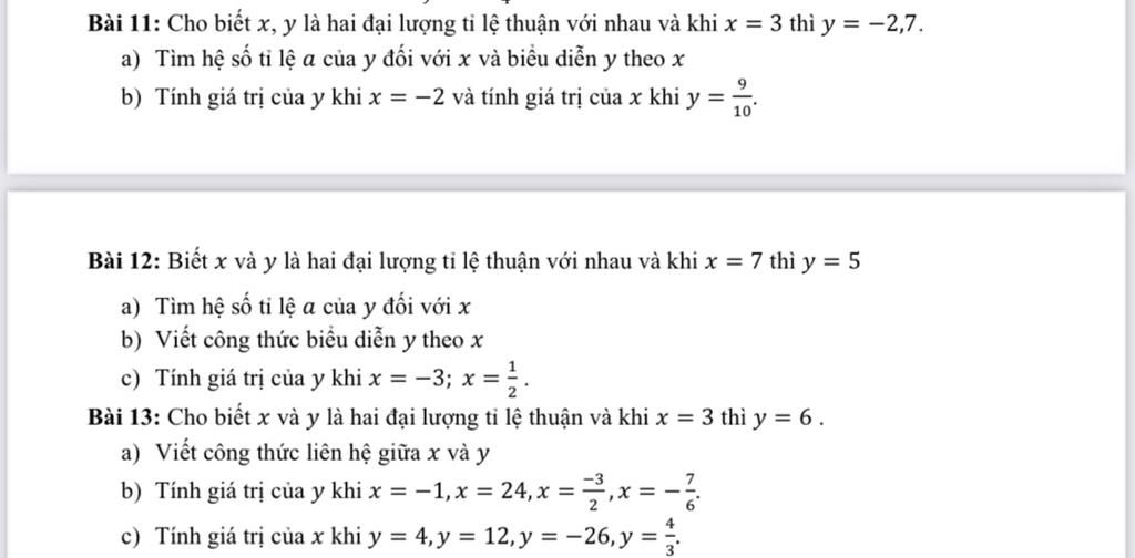 Bài 11: Cho biết x, y là hai đại lượng tỉ lệ thuận với nhau và khi x = 3 thì y = -2,7.