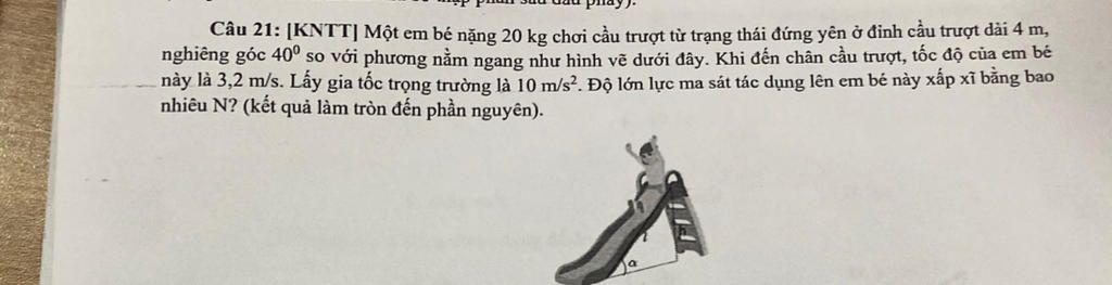 `<=> F_[ms] = [mg l sin alpha - 1/2 m v^2]/l = [20. 10.4.sin40^o - 1/2 .20.3,2^2]/4 approx 103 (N)`