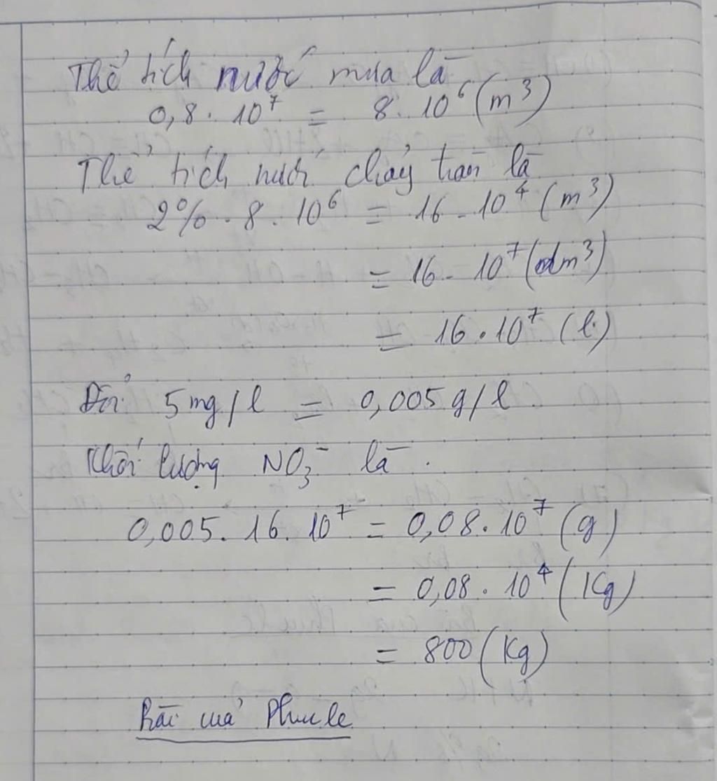 `m_{NO_3^-} = 5.1,6.10^8 = 8.10^8 (mg) = 800 (kg)`