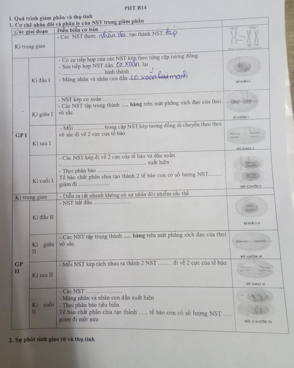 - Kì đầu giảm phân 2 : NST bắt đầu co xoắn lại, màng nhân và nhân tiêu biến, nhân con biến mất thoi vô sắc hình thành
