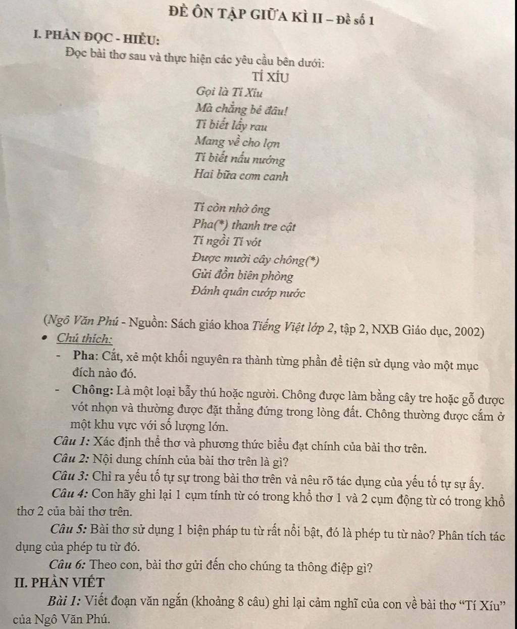 viết đoạn văn ngắn khoảng 8 câu ghi lại cảm nghĩ của con về bài thơ "Tí Xíu" của Ngô Văn Phú (Ý là làm bài 1 phần II)