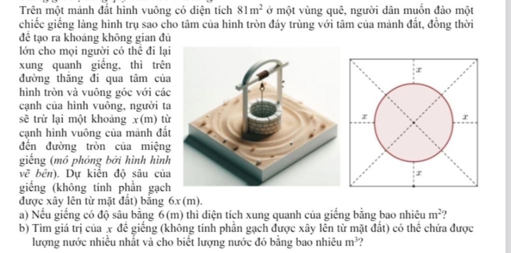 Thể tích giếng : `(9-2x)^2/4 * 3.14 * 6x `